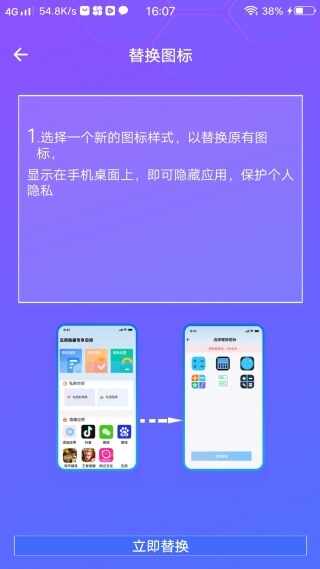 3、软件支持更换被隐藏应用的图标,使其外(wai)观不易被察觉。