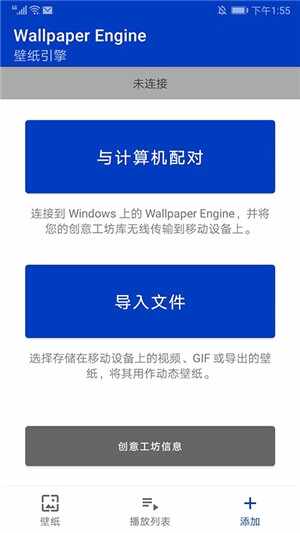 2、在您的Android设备上打开WallpaperEngine,然后单击右下角的添加按钮。