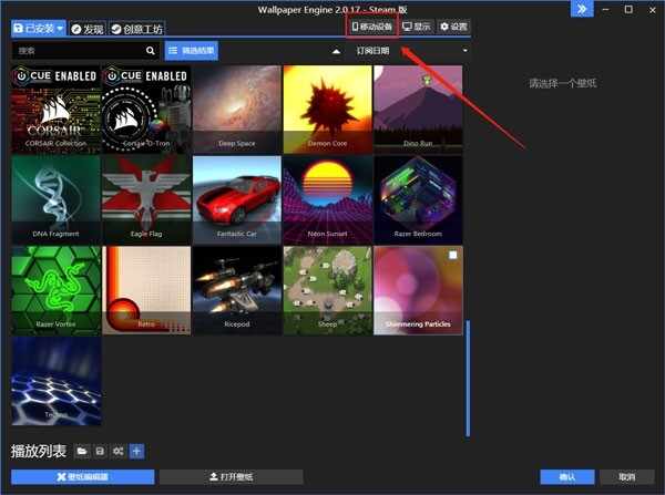 1、在Windows上的WallpaperEngine中单击新的移动设备按钮,然后选择连接新设备。