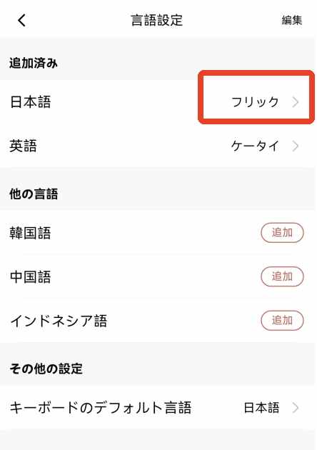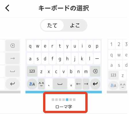 5、左右滑动可以选择不同的输入(enter)方式,选择下方名字为【ローマ字】的,这个是罗马音的意思。