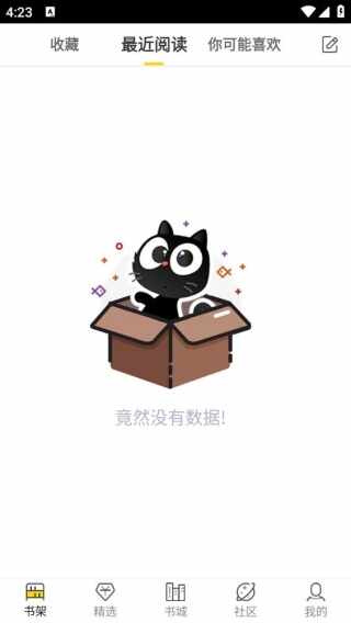 2、进入到书架界面,既可以查看收藏,还可以查看最近阅读内容。
