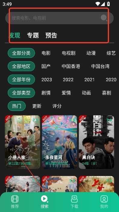 搜索板块,可以关键词精准(zhun)检索喜欢的影音内容