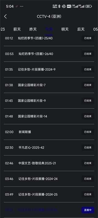 4、当(dang)然(ran)软件内肯定是少不了节目单的在这可以看到xxx节目在不在直播什么时候结束。