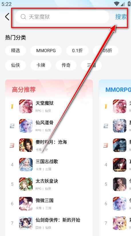 2、点击上方的搜索(suo)框进入,输入游戏名即可查找游戏。