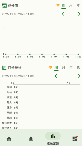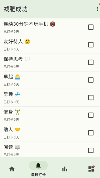 3、在这里进行每日打卡,记录自己的坚持和进步,无论是早起、健身还是阅读,都可以轻松打卡。