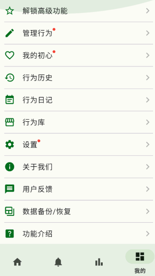 4、在“我的”模块,还能解锁高级功(gong)能,管理行为,也能及时反馈意见。