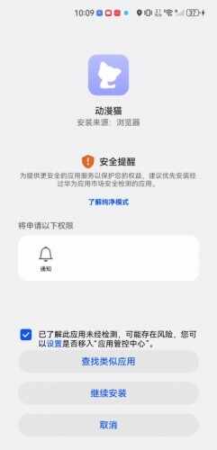 3、接下来点击勾选“已了解此应用未经检测……”,点击“继续安装(Install)”。(还可(ke)以点击了解纯净模式)