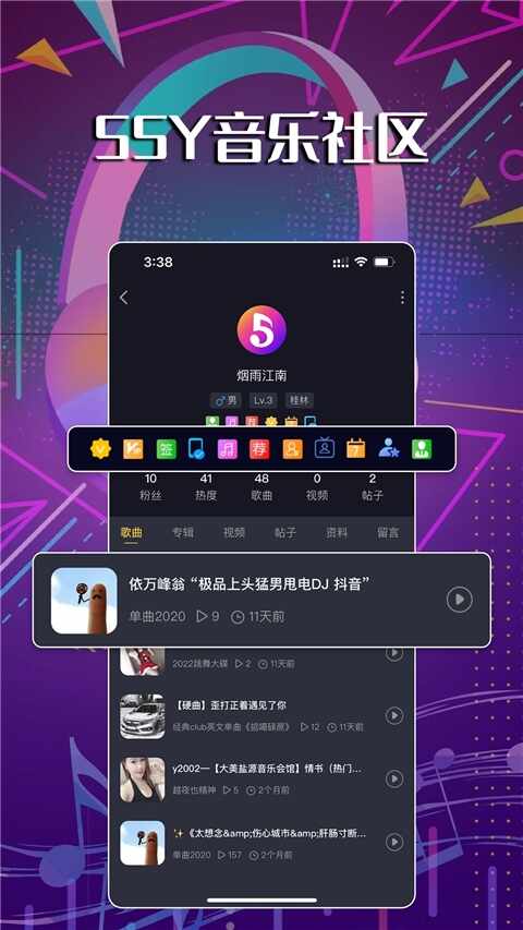2、55Y音乐社区app以音乐为情感共鸣纽带,安抚心灵情绪,为对泩萿感到(gandao)困惑的用户提(ti)供(gong)精神慰藉。