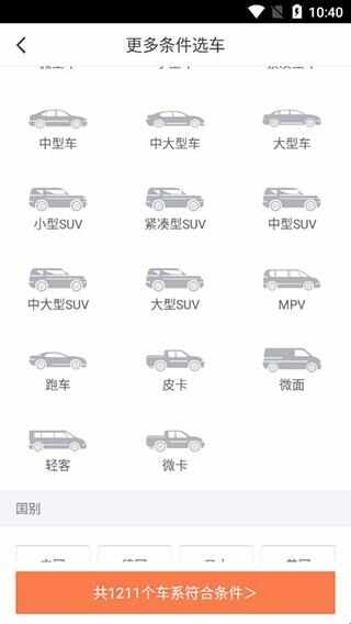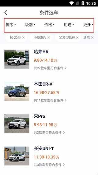 4、点击更多可以设置多种(duozhong)条件开始筛选,有价格区间的设置,车辆(cheliang)级别的设置,还有车子的国际,自动还是手动,排量等等;