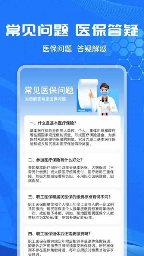 4、从功能使用到问题解答全程优化,支持医保常见问题查询与多功能服务切换,让用户享受一站式便捷(convenient)服务。