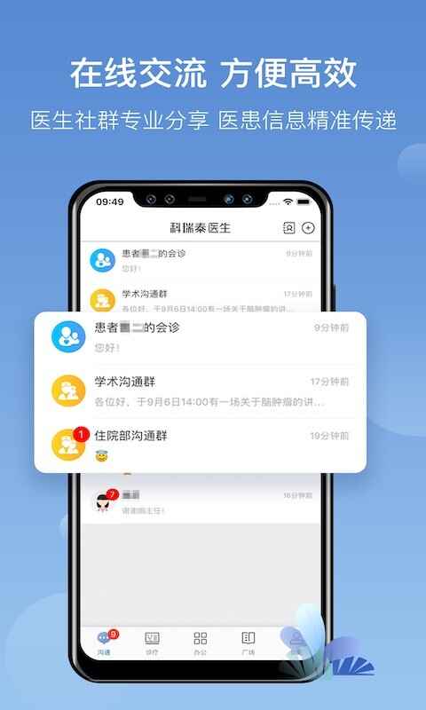 1、支持即时通讯功能,医生与患者之间可以通过图文、语音和視頻沟通信息。