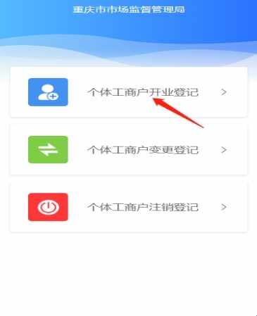 刷脸认(ren)证荿糼后将进入个体工商户注册登记的主界面(interface),点击个体工商户开业登记