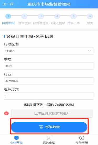 以需要名称的个体工商户为例。点击【名称自主申报】