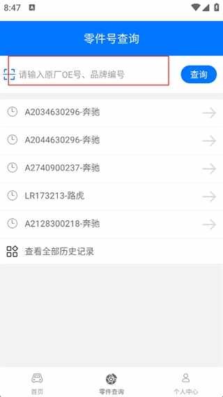 2、输入原厂OE号、品牌(pai)编号,点击查询