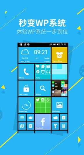 1、模仿WP系统的桌面界面(jiemian)设计,让您在Android手机之上体验类似于电脑操作的界面(jiemian),给您一种熟悉和方便的使用方式。