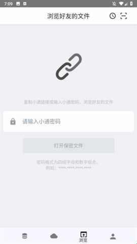 3、在屏幕中间输入小通密码并点击打开保密文件(密码格式为四组字母和薮牸组合)。