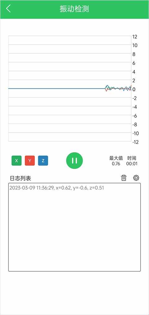 5、例如震动检测,你可以检测当前位置的震动情况。