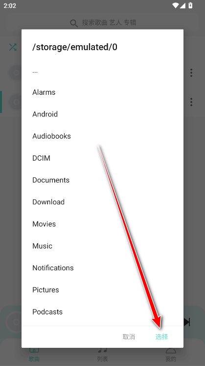 3.点击含有本地音乐的文件,接着点击选择。