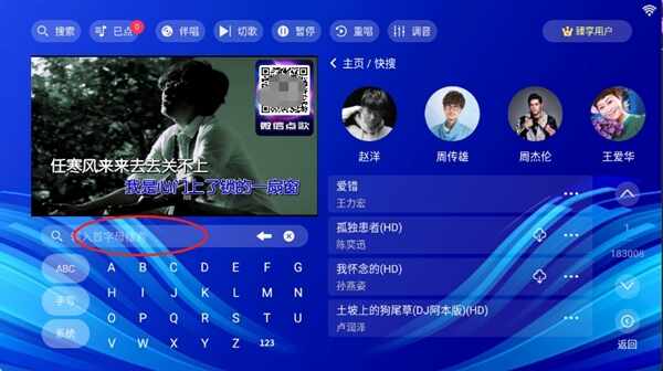 4、点击(ji)歌曲,就可以智能点歌,然后再已点歌曲板块,查看已点歌曲.