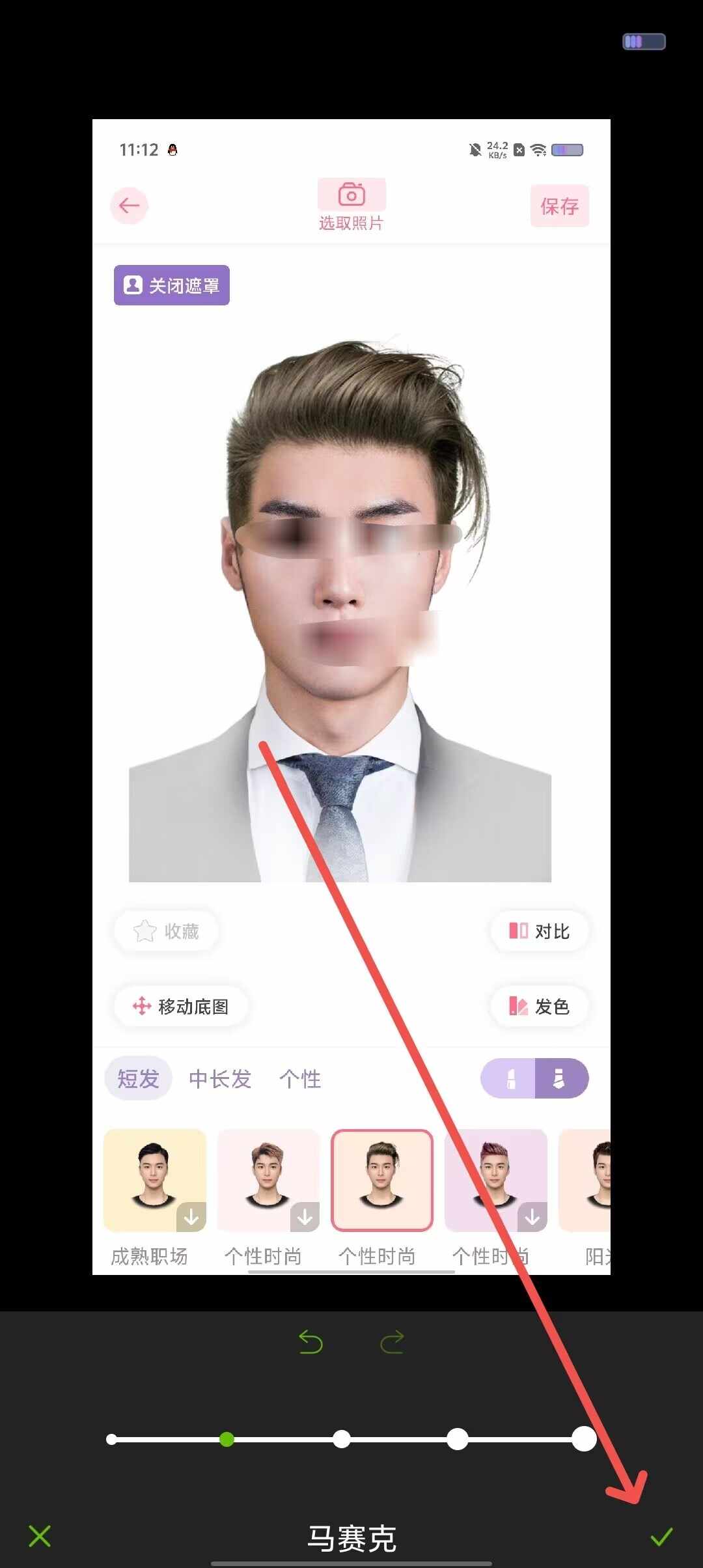 3、第三步,涂抹燳爿即可在对应位置打马赛克,点击对勾即可保存。