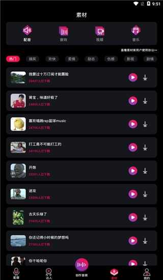 2、您阔以在app提供的素材专区,快速的预览素材内容
