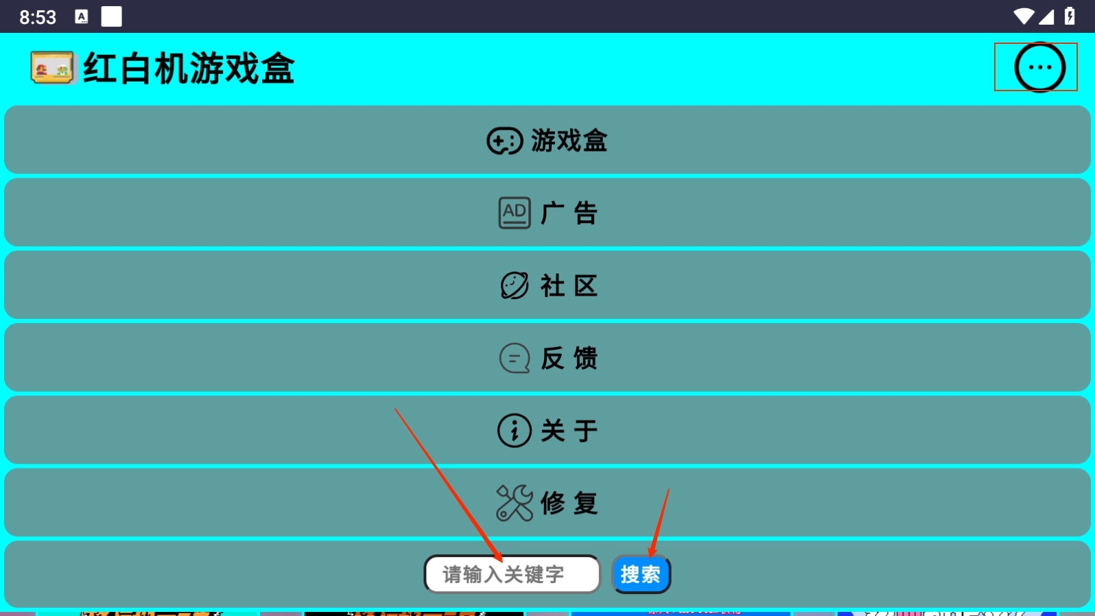 2、还可以点击右上角的三个点,弹出弹框,输入游戏名搜索(search)喜欢的游戏。