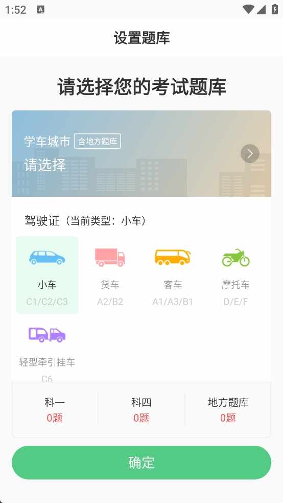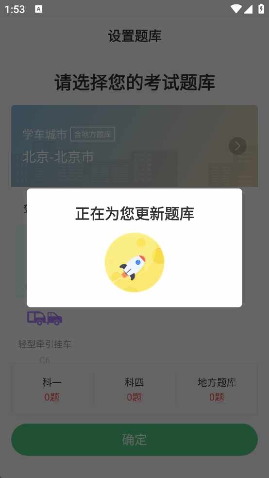 2、选定城市后,系统会自动更新对(dui)应地区的最新驾考题库。