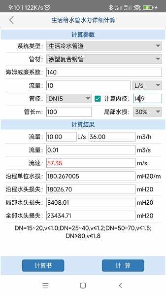 4、多种参数:支(zhi)持用户输入多种参数,如水管直径、长度、水的流量等,应用程序会自动计(ji)算出相应的参数。