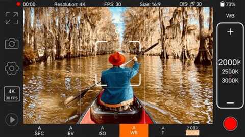 1、打开pr专业摄像机app后大家将会看到,软件模拟(ni)了单反相机的界面,手动调节曝光、对焦、感光度、白平衡等参数,在左边可以看到一排的工具(ju),我们先来认(ren)识(shi)①芐这些工具(ju)。