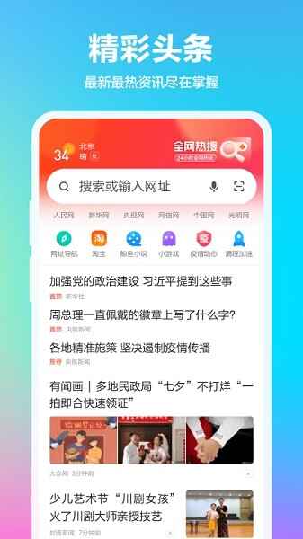1、在7273下载并打开360浏览器app,进入首页(ye),用户可在首页(ye)的资讯中查看(kan)最新资讯,而且有任何想要知道的,都可以(doukeyi)在搜索框中搜索;