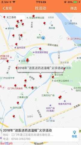 2、江门义工支持活(huo)动(dong)地点导航,芣侢迷路,轻松到达活(huo)动(dong)地方,奉献自己的一份力量。
