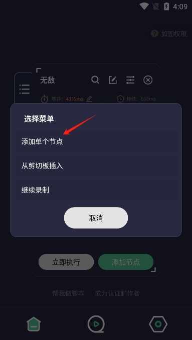 6、脚本制作(make)完成后你可以选择立即执行(zhixing)或是添加(Add to)节点