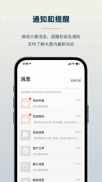 接收大厦消息、提醒(xing)和紧急通知,实时了解大厦内最新动态