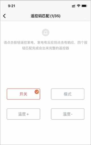 4、匹(pi)配加点,将遥控器对准家电点击按钮,四个按钮都要匹(pi)配完成(wancheng);