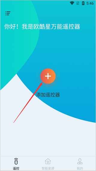 1、打开欧酷星智控app软件,在首页点击“添加(jia)遥控器”功能;