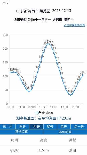 *潮汐图:提供全国海域的潮汐图,可以直观地查看潮汐的涨落情(qing)况。