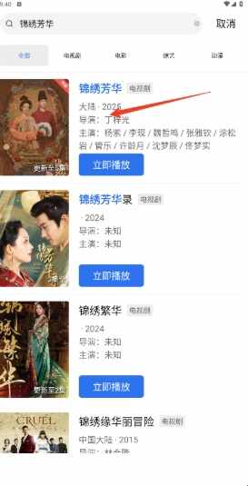 2、输入关键字,系统会为用户呈现相关的影视(shi)资源