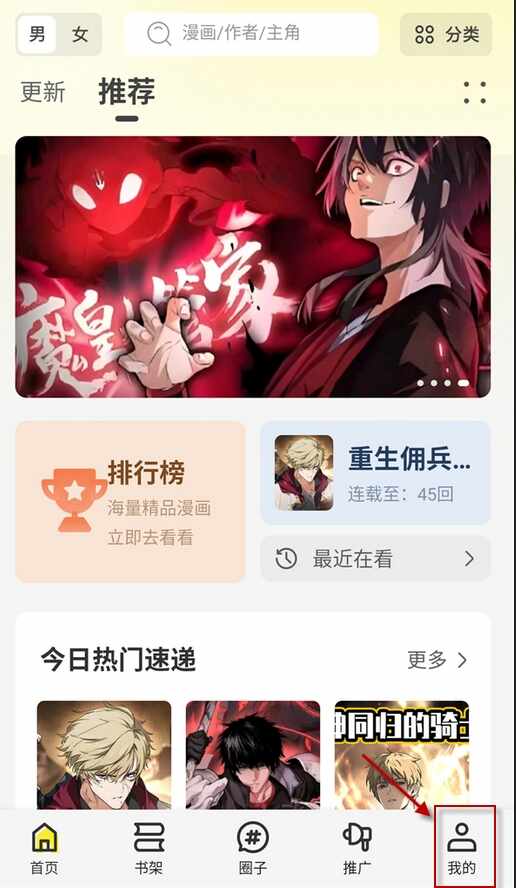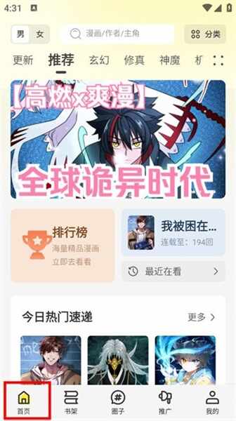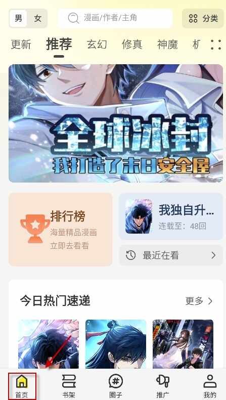 1、下(xia)载安装并打开轻图馆后,在“首页”中选择一本漫画。