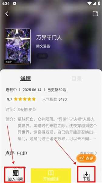 4.如果对该作品感兴趣,还能够添加到书架或是下(xia)载到本地中离线阅读