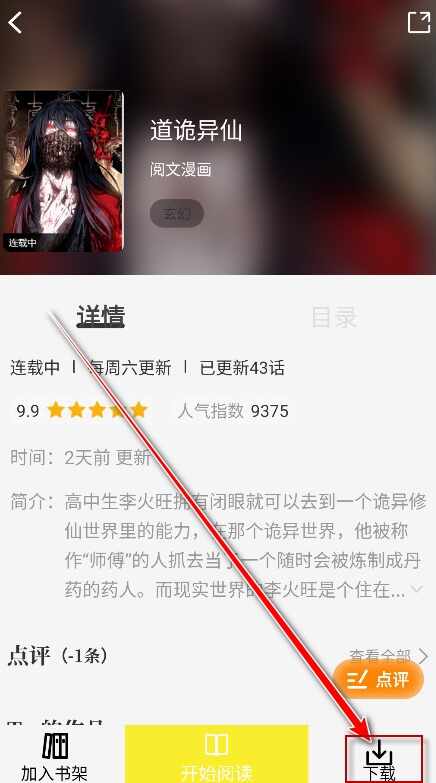 2、进入漫画详情页后点击底部的“下(xia)载”按钮。