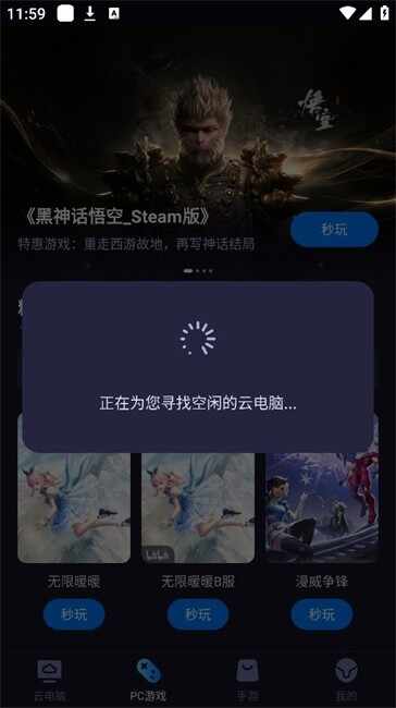 5、等(deng)待(dai)寻找空闲云电脑,请耐心等(deng)待(dai)下;
