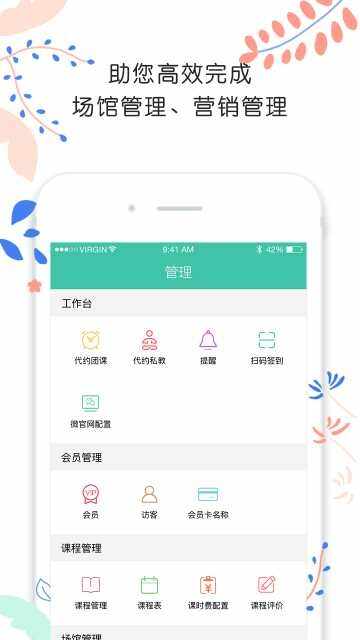 课程表、预约状况、耗卡情况等查询;多场景服务提醒;营业状况监控;有效提升瑜伽馆工作效率,助瑜伽从业者做个轻松的瑜伽人。