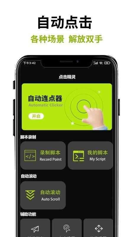 4、能够解放(liberation)用户的双手,让用户无需手动操作即可(jike)完(wan)成重复性点击任务。