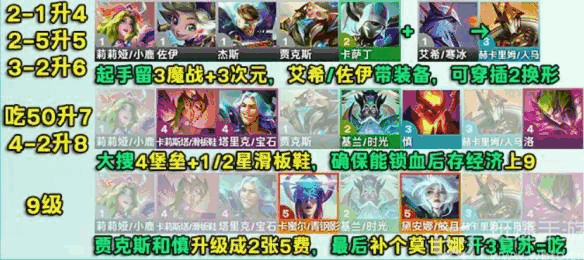 1、起手留3魔战+3次元,艾希1佐伊带装备(equipment),可穿插2换形。
