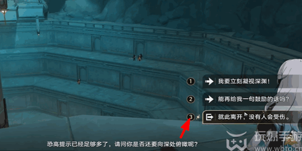 4、一直到这个悬崖的边上之后(after),就可(ke)以(yi)點击俯瞰开始选(xuan)择了。