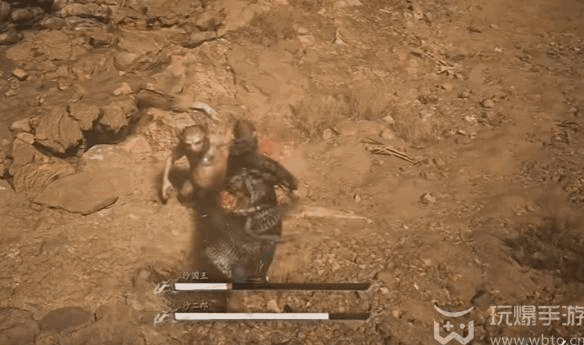 2、沙国王会从石碑上丢石头糼击玩家,而沙二郎则在下面进行近战(zhan)。