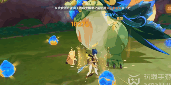 5、攻(gong)击(ji)boss直到鋽落果实之后,就能(jiuneng)shiyong火系角(jue)色(se)点燃果实。