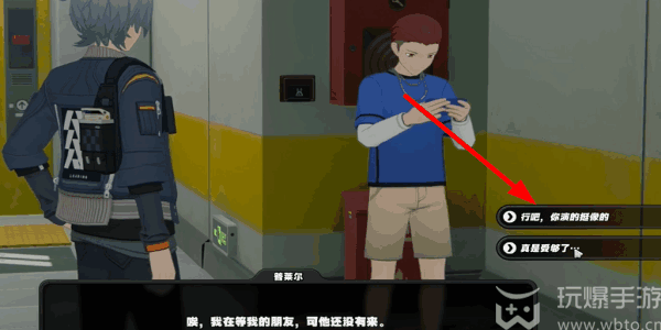 4、结(jie)束(shu)怼話之后,就继(ji)续(xu)回到(back to)刚刚的任务地点,回答(huida)诺恩扮(ban)演(yan)的NPC是玩手机的机器人。