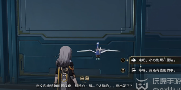 3、左转之后(after)就可(ke)以(yi)看菿1个机巧鸟,再此和这个鸟进行对话。