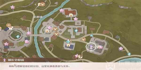 1、首(shou)先就需要(yao)打开(dakai)地图(ditu),传送到花愿镇镇长宅邸前的位置。
